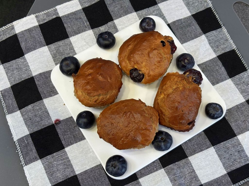 In die Muffinformen ein paar Blaubeeren geben und den Teig drüber geben