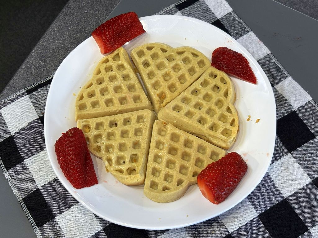 In die Waffelform den Teig geben und bei 180 grad Celsius / 10 min backen